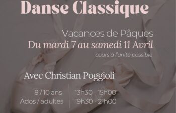 07 > 11Avr2026 Stage de danse classique L’association les amis de la galerie vous propose, un stage de danse classique du 7 au 11 avril prochain. Cours enfants (l’après-midi) et ados adultes (le soir). Pour s’inscrire Pour qui participent aux ateliers théâtre et mouvement le matin, une permanence est prévue afin que les enfants puissent déjeuner sur place (repas tiré du sac).